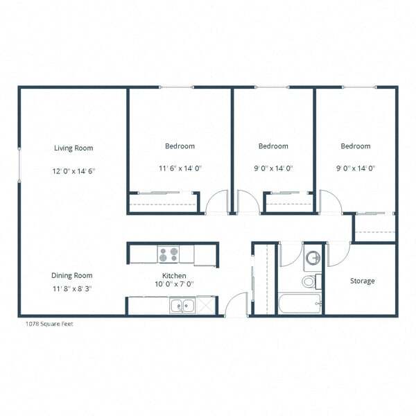 3 Beds, 1 Bath, 1078 sq ftModel Gallery