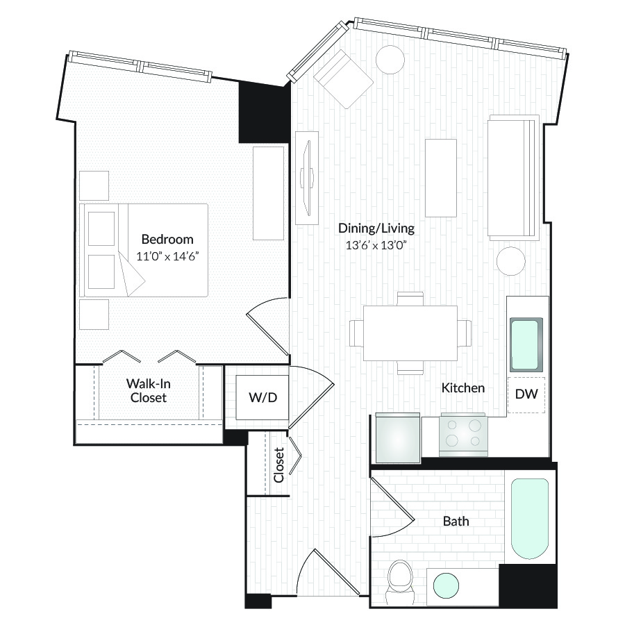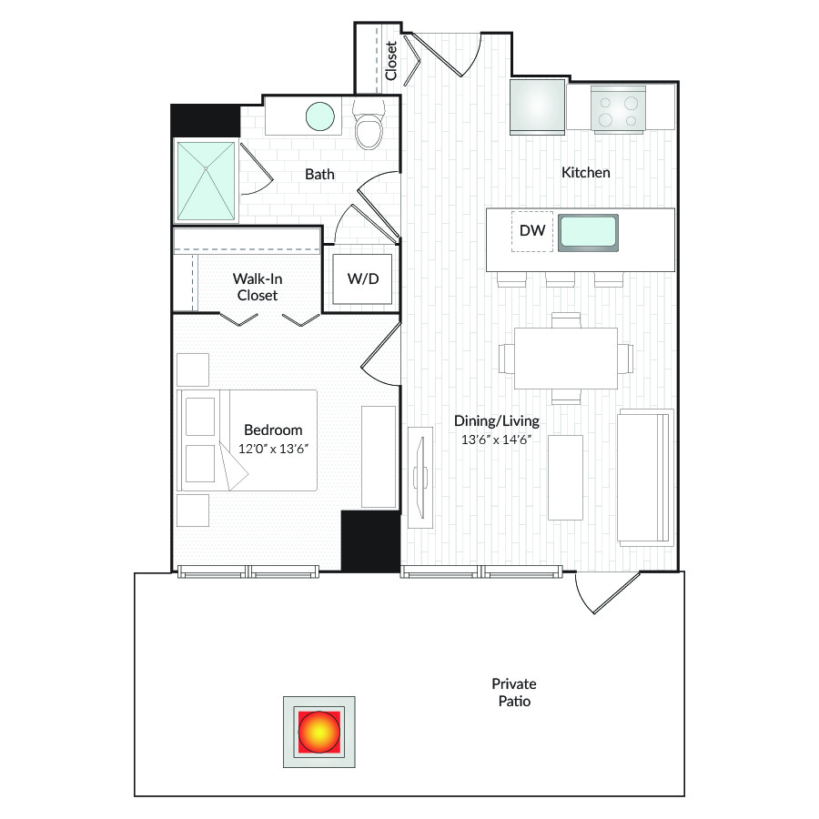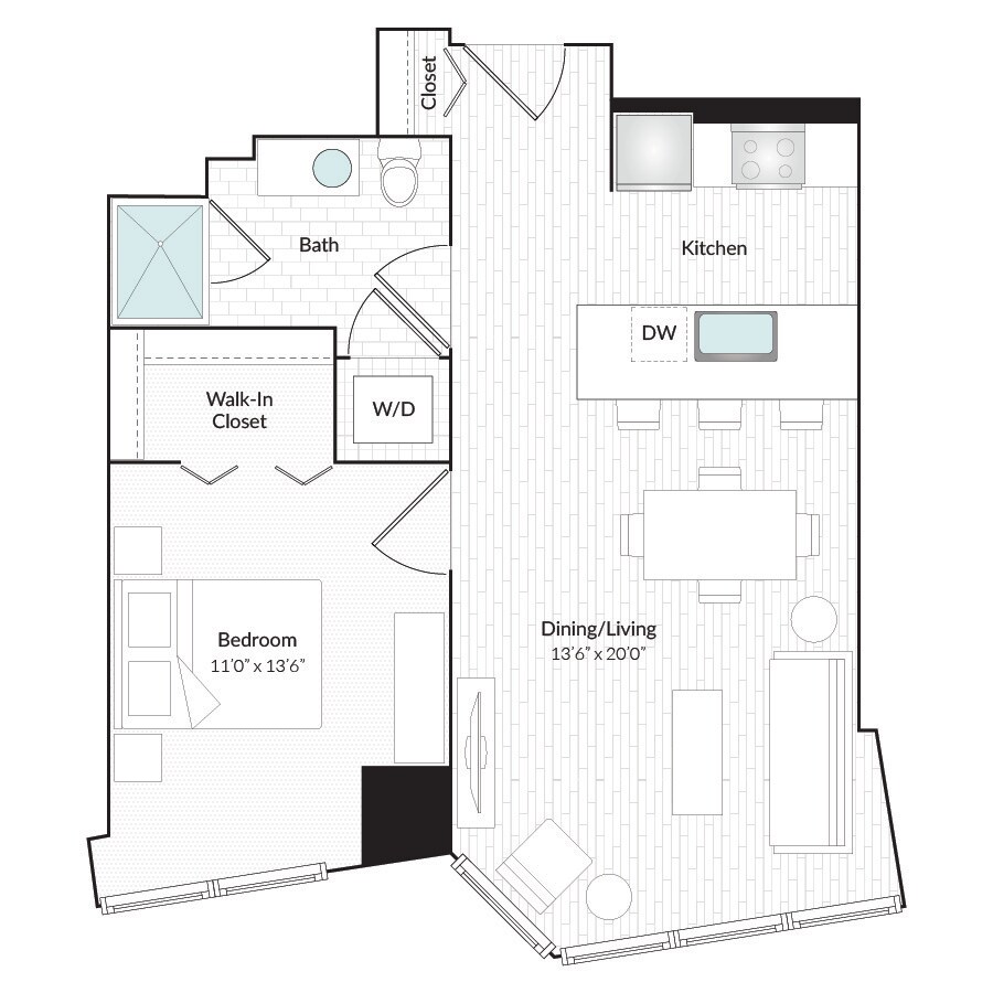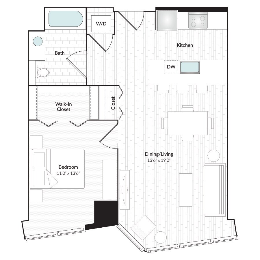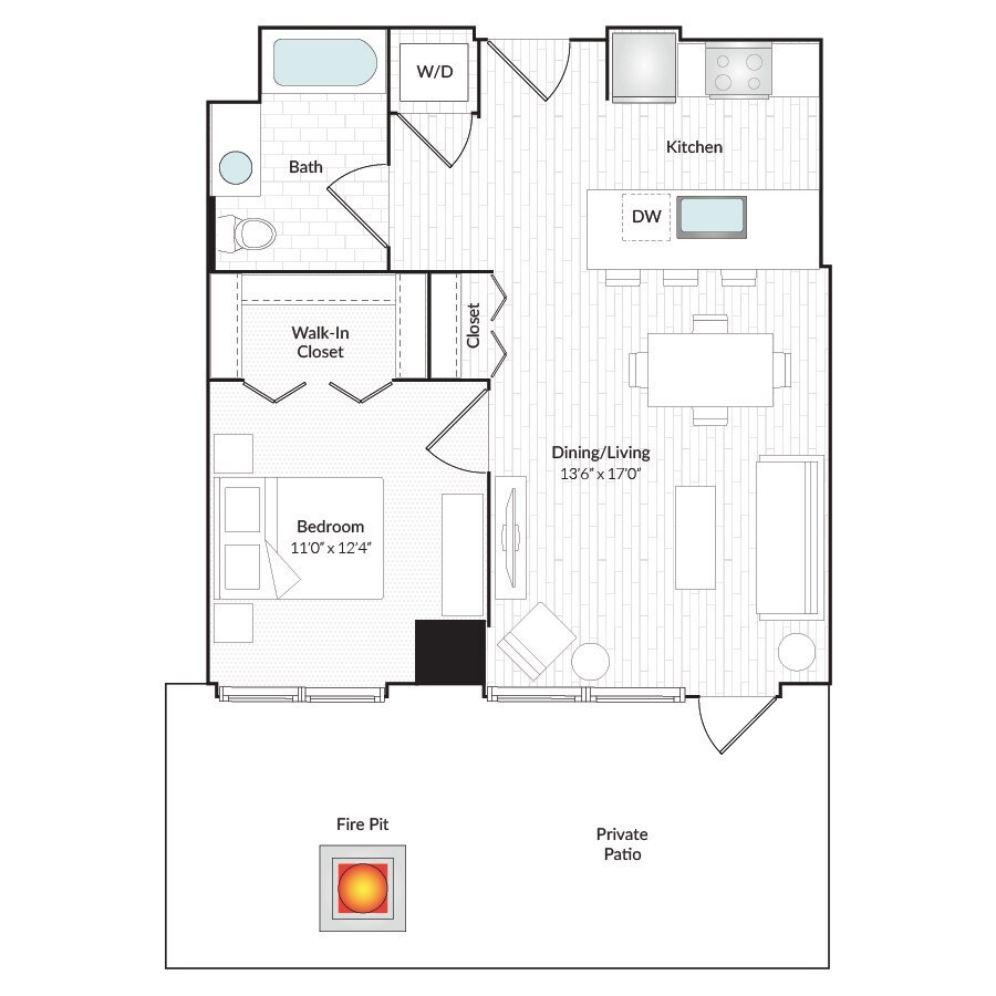 Studio, 1 Bath, 623 sq ftAvailable NowLargest StudioThis is the largest Studio at this PropertyModel Gallery