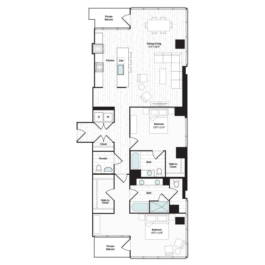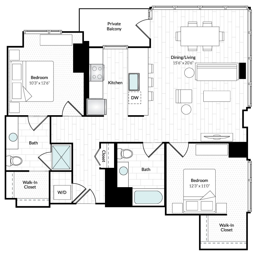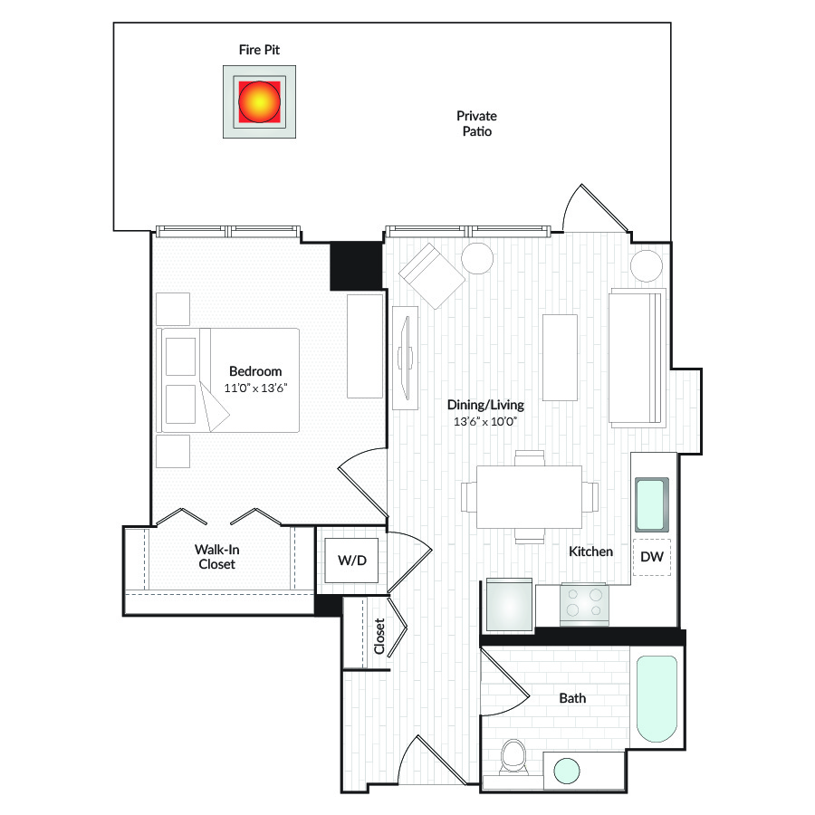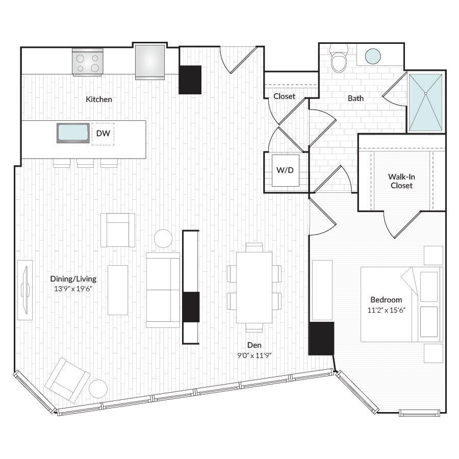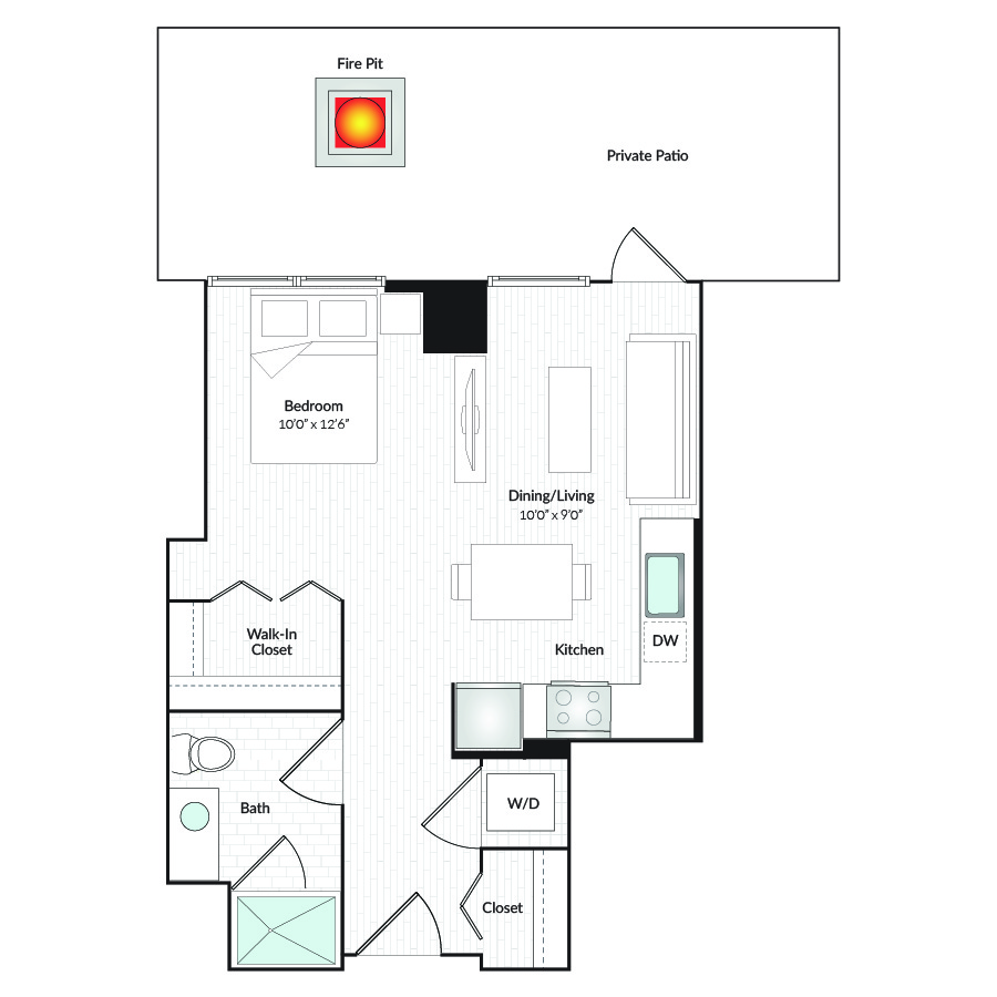 Studio, 1 Bath, 623 sq ftAvailable NowLargest StudioThis is the largest Studio at this PropertyModel Gallery
