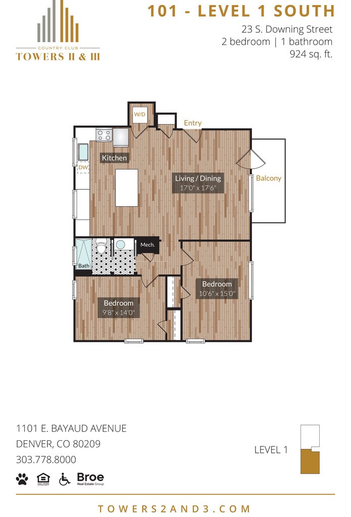 Country Club Towers is located at 1101 E Bayaud Ave near the Speer area of Denver, CO