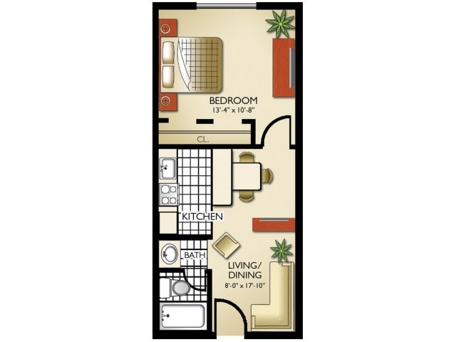 Studio, 1 Bath, 450-480 sq ftAvailable NowModel Gallery