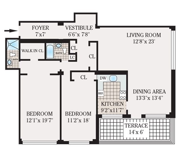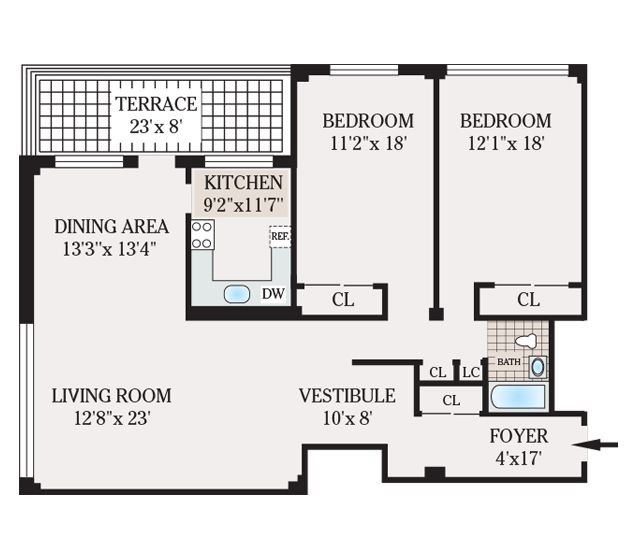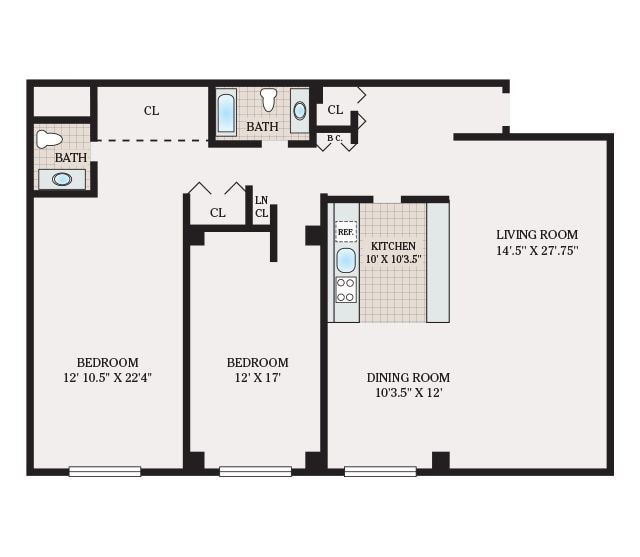 Two Bedroom 2 Bath Standard - Floorplan 1 Two Bedroom Large