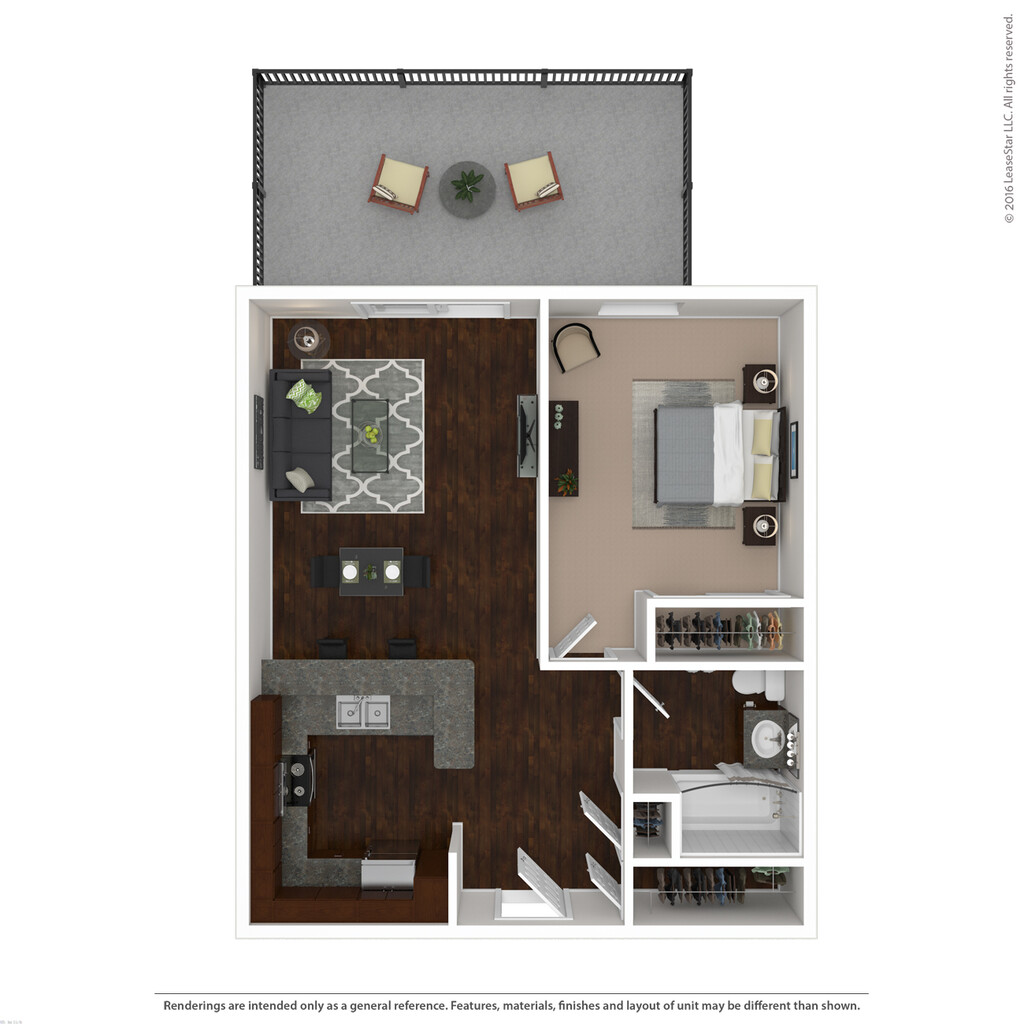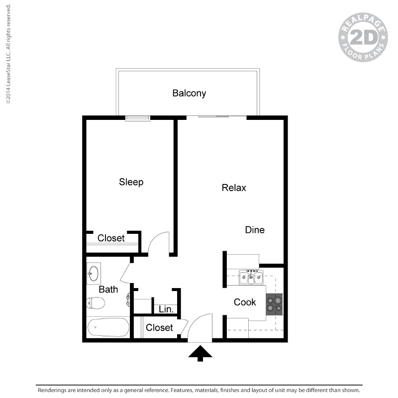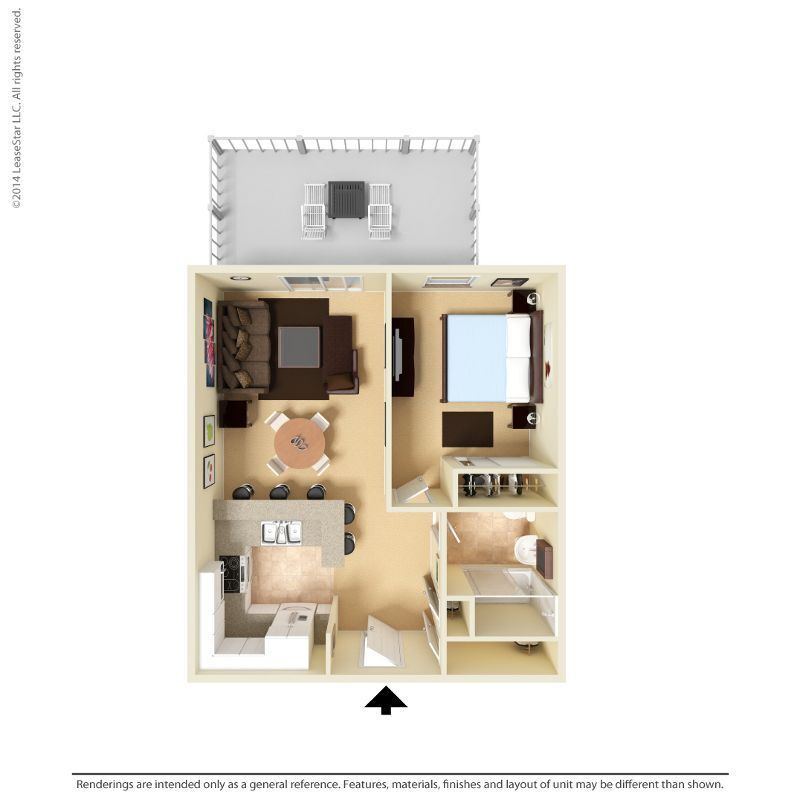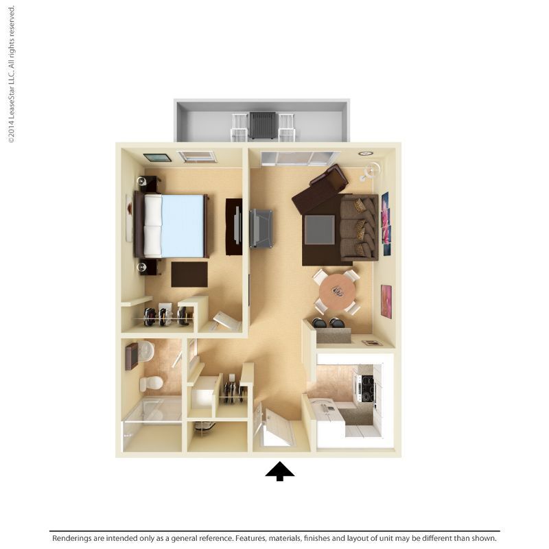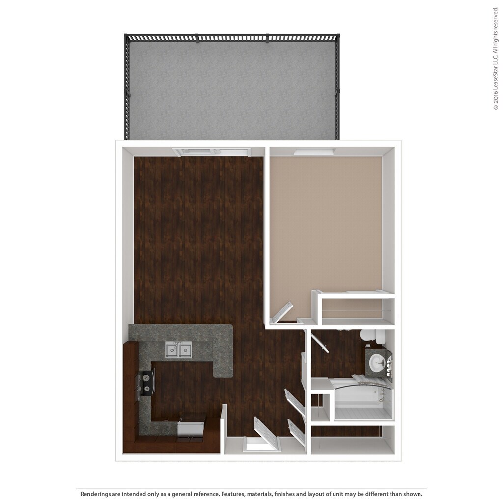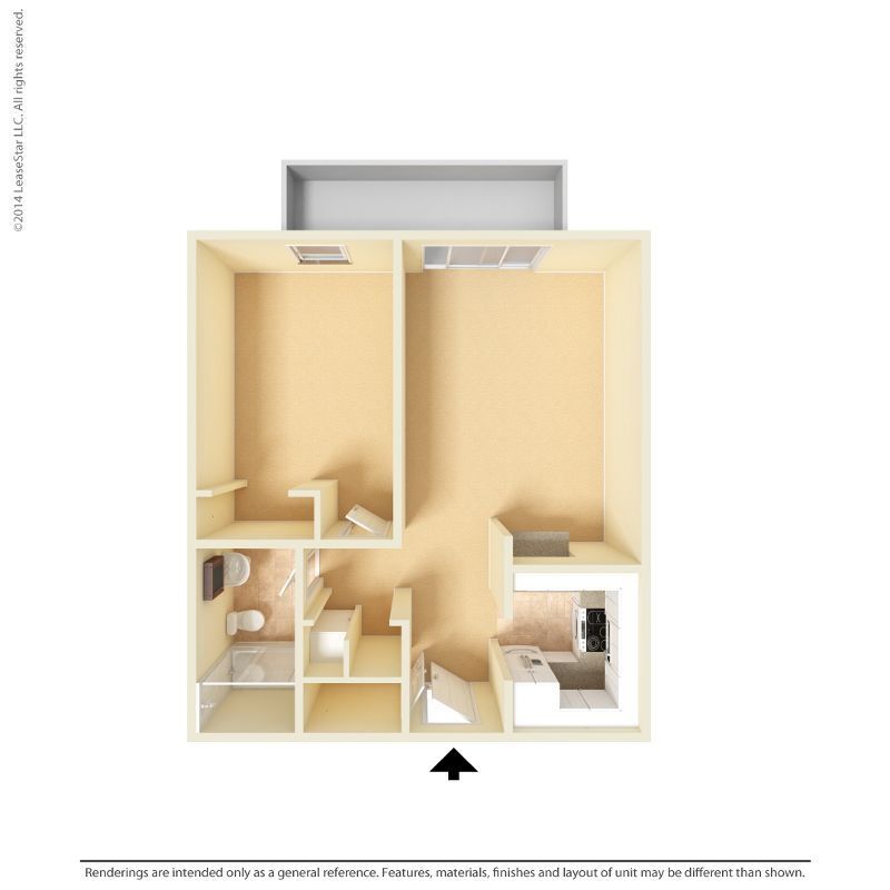 Medium 1 Bed 1 Bath - Floorplan 2 Floor plans are artist's rendering. All dimensions are approximate. Actual product and specifications may vary in dimension or detail. Not all features are available in every rental home. Prices and availability are subject to change. Base rent is based on monthly frequency. Additional fees may apply, such as but not limited to package delivery, trash, water, amenities, etc. Deposits vary. Please see a representative for details.