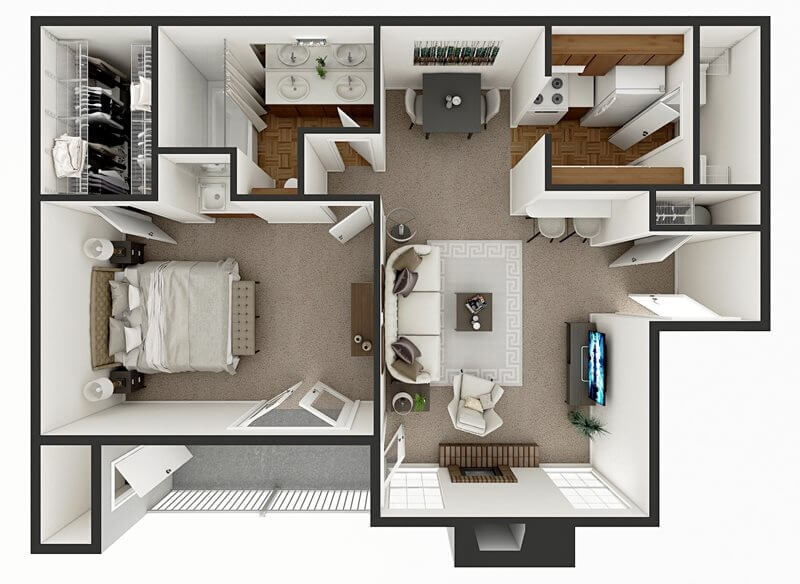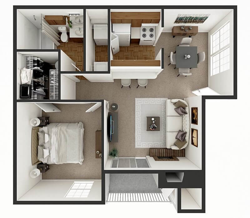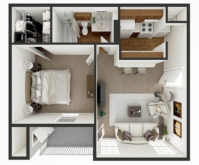 - 1 Bedroom- Jefferson1 Bed, 1 Bath, 510 sq ft- Model Gallery- Floorplans- Availability Details- Availability Date - Unit - Sq Ft - Call for Availability - Jefferson - 510 sq ft - Model Amenities and Features- Features- Air Conditioning