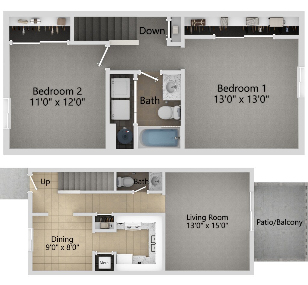Apartment Model: The Duke$1,4752 Bedroom, 2.5 Bath, 1160 sq ftAvailable NowThe Duke - Floorplan 1 The Duke - Floorplan 2 3 Bedrooms