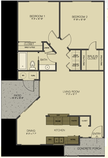 2 Beds, 1 bath - Floorplan 1
