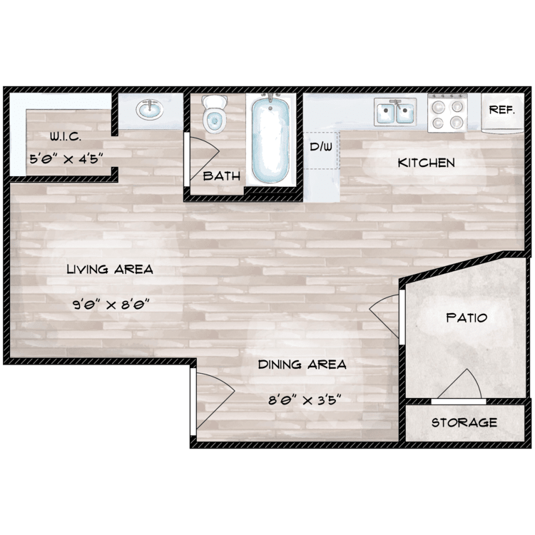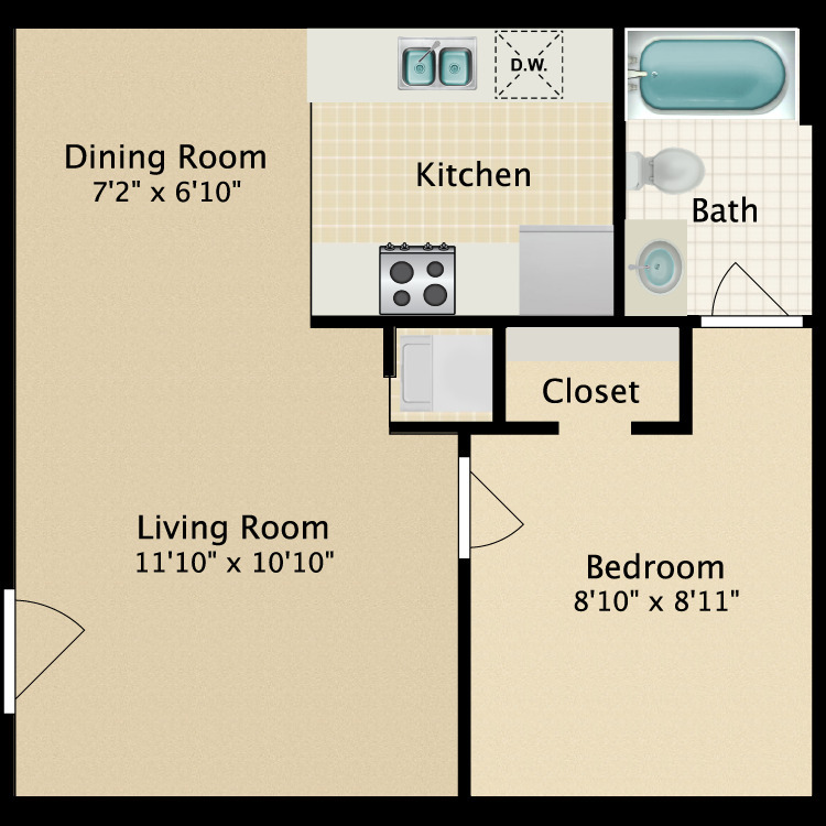Efficiency/Studio - Floorplan 1 Floorplan A2