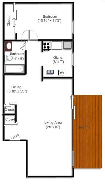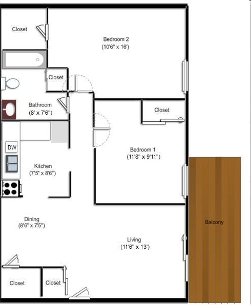 2 Beds, 1 Bath, 850 sq ftAvailability Details