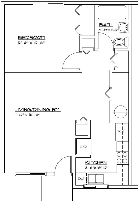 2 Bed, 1 Bath - Floorplan 1 ![]()