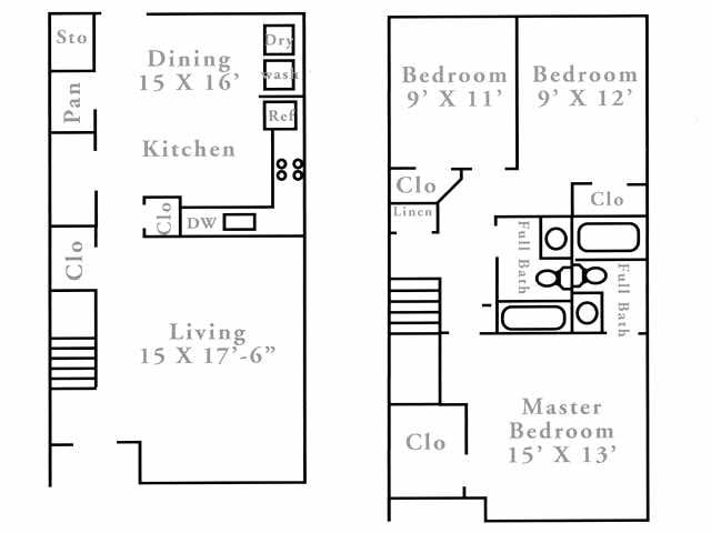 Apartment Model: 3 Bedroom Town Home$1,3753 Bedroom, 2 Bath, 1332 sq ftAvailable January 1, 2026FloorplansPhotos![]()