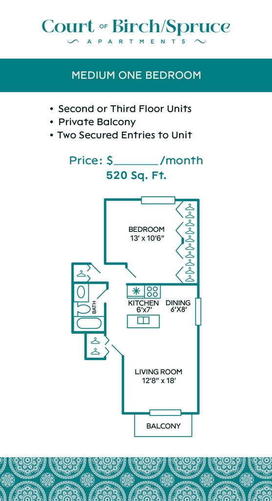 Court of Birch and Spruce Apartments offers 1 Bedroom apartments starting from $1,425 and having 520 sq ft. Here is the current pricing and availability:
