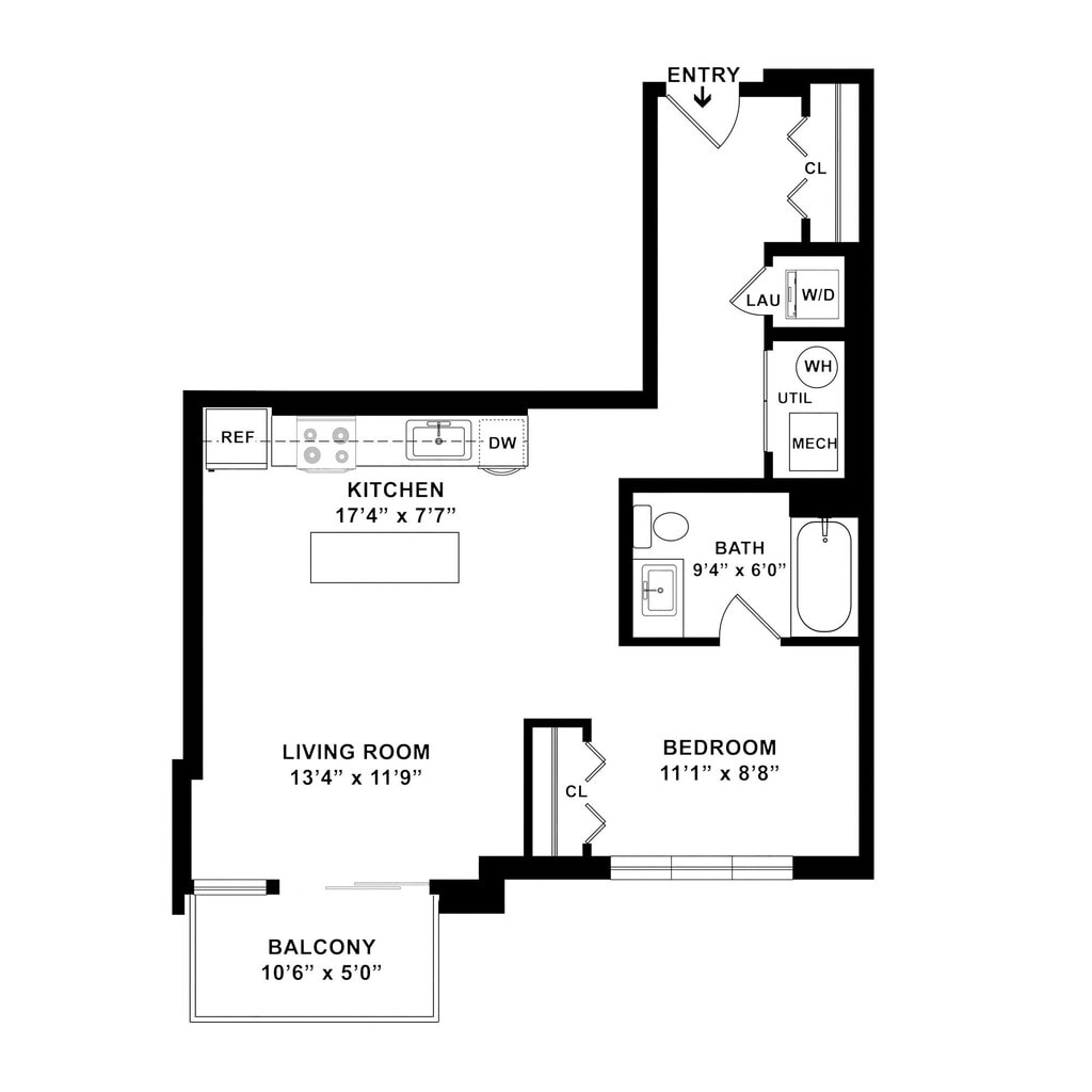 Studio, 1 Bath, 624 sq ftModel Gallery