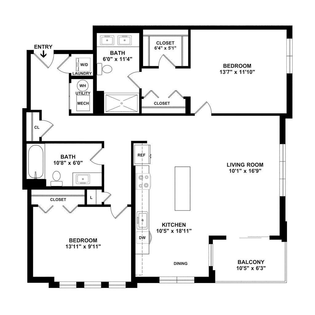 1 Bed, 1 Bath, 805 sq ftAvailable NowModel Gallery