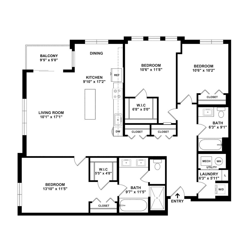 Apartment Model: Studio C$2,288Studio, 1 Bath, 634 sq ftUnavailable![]()