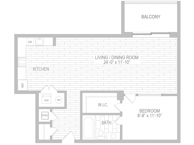 1x1 Modernized - Floorplan 1 Apartment Unit: 132Apartment Model: 1x1 Modernized$2,2751 Bedroom, 1 Bath, 676 sq ftAvailable Now![]()