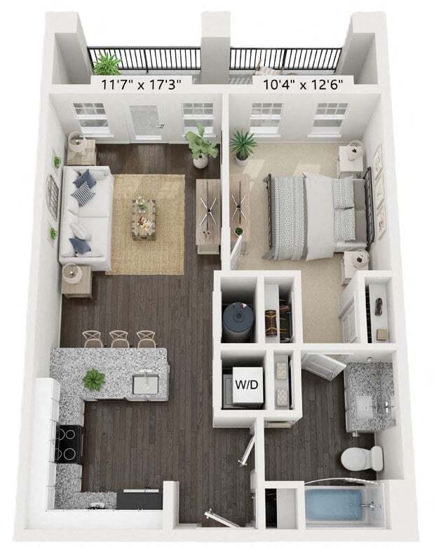 Apartment Model: 1A Renovation 4From $1,3251 Bedroom, 1 Bath, 620 sq ftAvailable Now![]()
