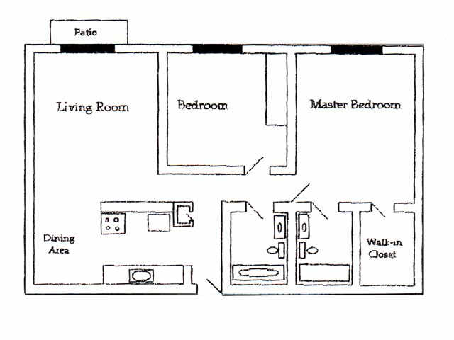 1 BED 1 BATH - Floorplan 11 2 Bedrooms