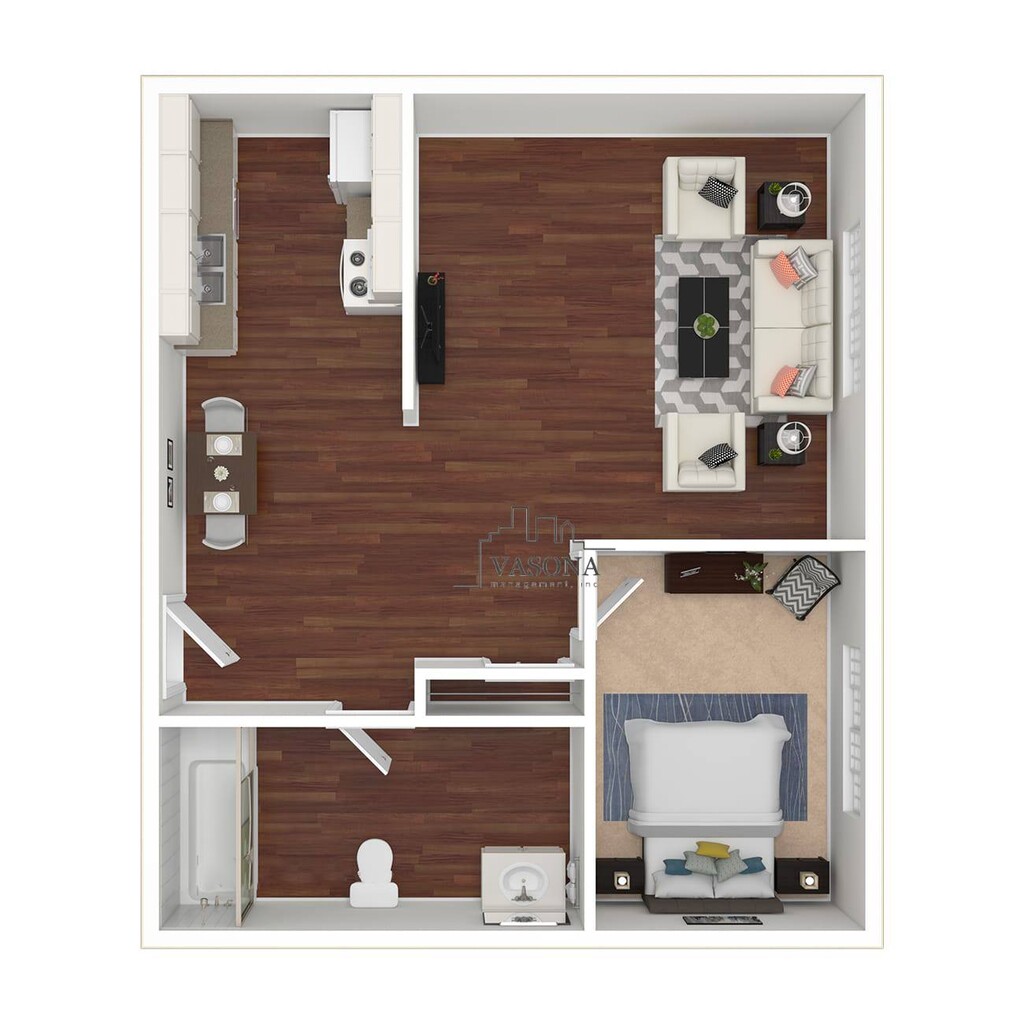 1 Bed, 1 Bath, 608 sq ftAvailable NowModel Gallery
