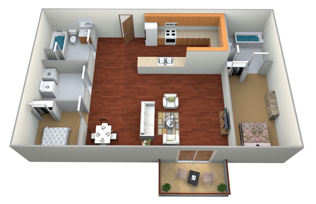 Apartment Model: 2 Bed, 2 Bath$1,2352 Bedroom, 2 Bath, 1168 sq ftUnavailable![]()