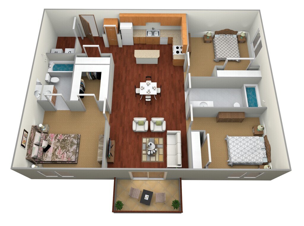 2 Bed, 2 Bath - Floorplan 1 3 Bedrooms