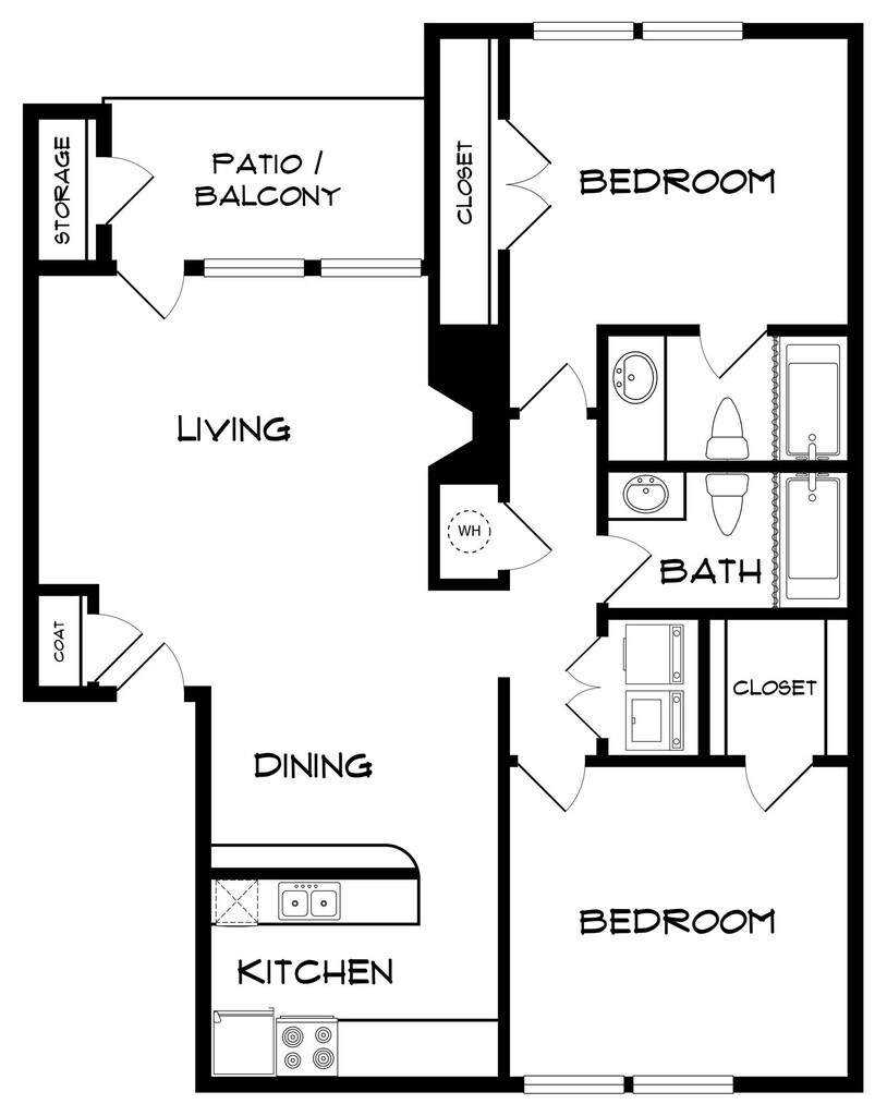 Apartment Model: The OakFrom $1,3432 Bedroom, 2 Bath, 888 sq ftUnavailableFloorplansPhotos![]()