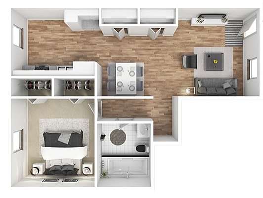 2X1 TH Deluxe - Floorplan 1 Apartment Unit: 001Apartment Model: 2X1 TH Deluxe$7502 Bedroom, 1 Bath, 750 sq ftAvailable Now2x1 Platinum