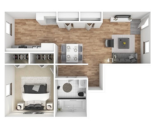 Apartment Model: 1x1 Platinum$7501 Bedroom, 1 Bath, 615 sq ftAvailable Now![]()