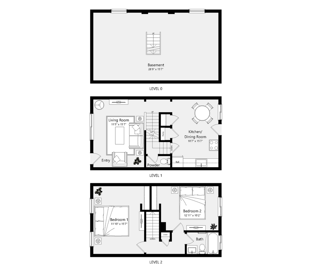 Courtyard - 2 Bedroom 1.5 Bath Townhome - Floorplan 11 ![]()