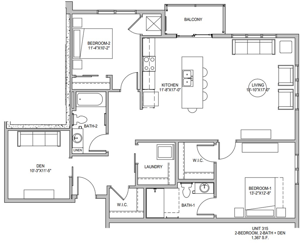 Corliss | 2 Bedroom, 2 Bathroom Apartment - Floorplan 12 Boston | 2 Bedroom, 2 Bathroom, + Den, Apartment