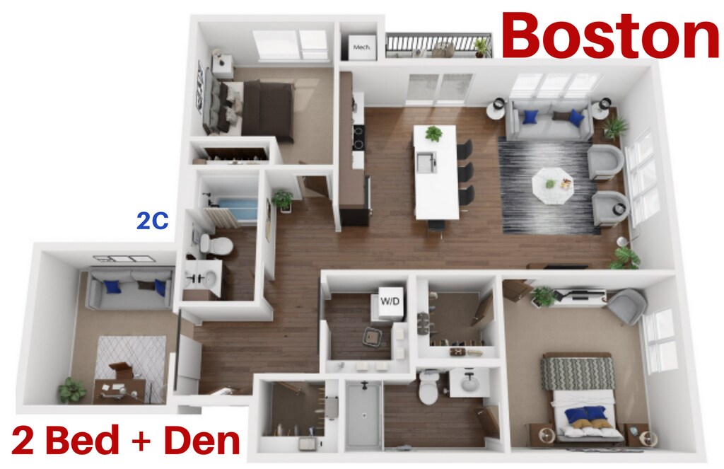 Apartment Model: Boston | 2 Bedroom, 2 Bathroom, + Den, Apartment$2,2662 Bedroom, 2 Bath, 1367 sq ftAvailable April 10, 2026![]()