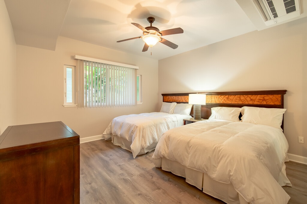 The Courtyards at Waipouli is the premier, professionally managed apartment community on Kauai. Located just one block from the beach and close to shopping (Kinipopo Shopping Center, Coconut Marketplace, Safeway and Long’s), the project provides an unbeatable location right off Kuhio Highway in the Kapa’a area. The property consists of 82 units, including one, two and three-bedroom floor plans from which to choose. The property has two categories of units: standard units and upgraded units. The upgraded units have new vinyl plank flooring and air conditioning. The pictures in this listing show upgraded units. Furnished units are available. Minimum lease length is six months. The project is currently fully leased, but feel free to contact the property for more details relative to unit pricing and future unit availability.