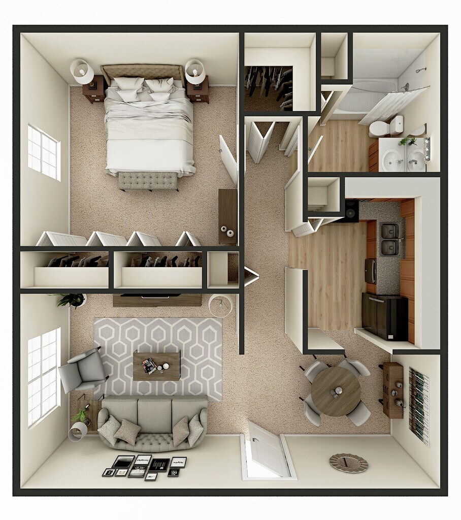 Apartment Model: One BedroomFrom $8951 Bedroom, 1 Bath, 750 sq ftAvailable NowFloorplansPhotos![]()