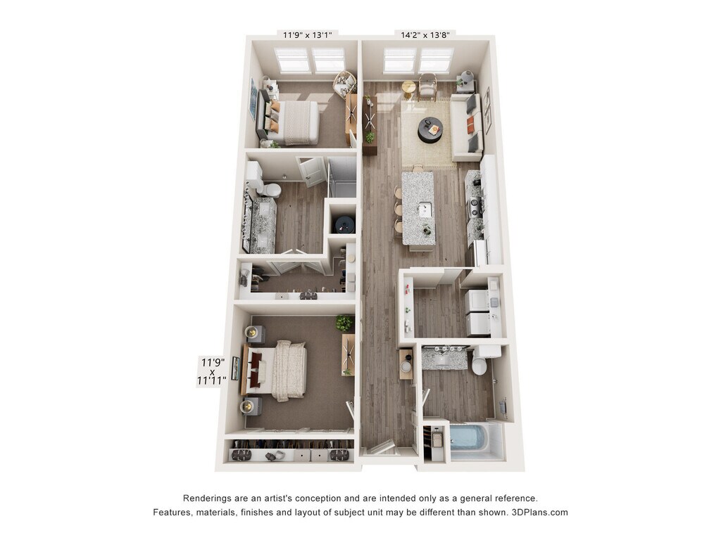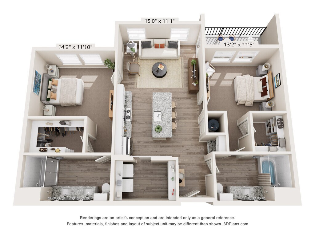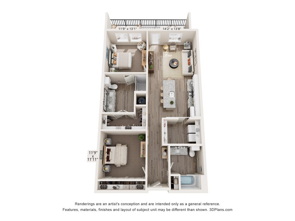 2 Beds, 2 Baths, 1735 sq ftAvailable NowLargest 2 BedroomThis is the largest 2 Bedroom at this PropertyModel Gallery