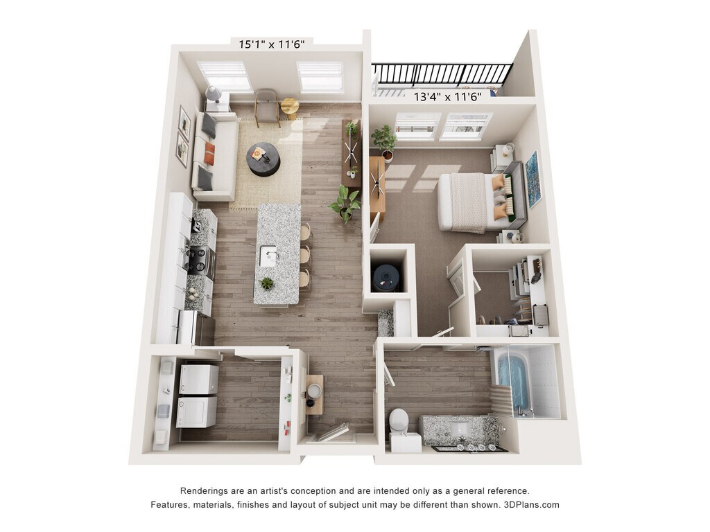 Apartment Model: A1$2,0391 Bedroom, 1 Bath, 849 sq ftAvailable December 31, 2025![]()