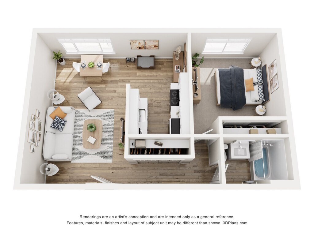 The Isles - Floorplan 2 Apartment Unit: 61-104Apartment Model: The IslesStudio, 1 Bath, 500 sq ftAvailable December 7, 20251 Bedroom