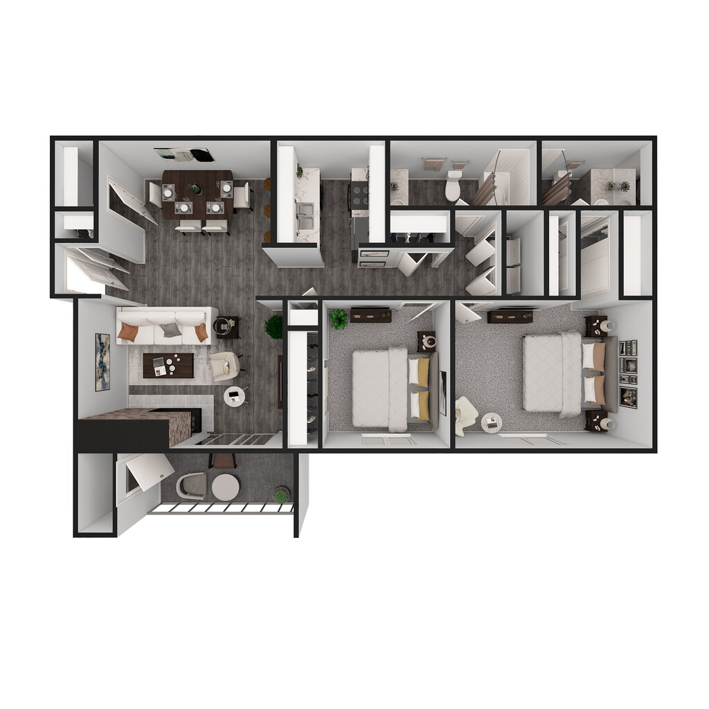 2 Beds, 2 Baths, 1042 sq ftAvailable NowModel Gallery