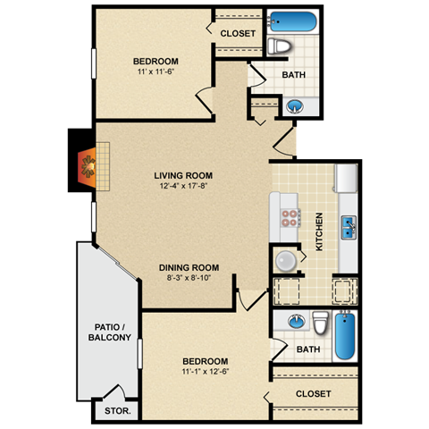 Apartment Model: B12 Bedroom, 2 Bath, 972 sq ftAvailable Now![]()