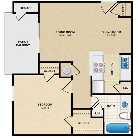 Apartment Model: A21 Bedroom, 1 Bath, 618 sq ftAvailable Now![]()