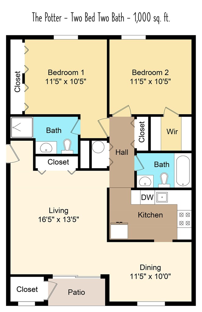 2 Beds, 2 Baths, 1000 sq ftAvailable NowModel Gallery