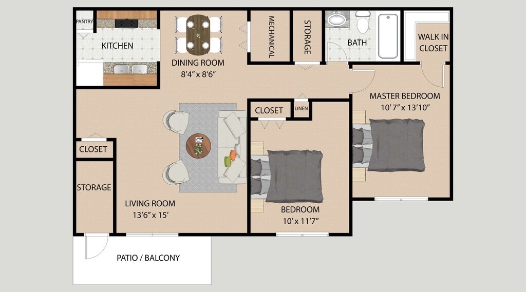 2 Beds, 1 Bath, 911 sq ftAvailable NowModel Gallery