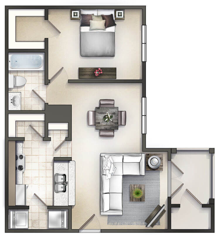 1 Bed, 1 Bath, 750 sq ftAvailable NowModel Gallery