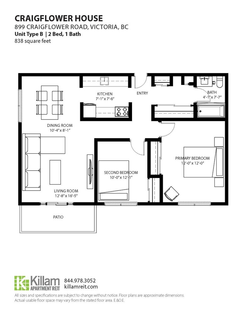 2 Beds, 1 Bath, 838 sq ftModel Gallery