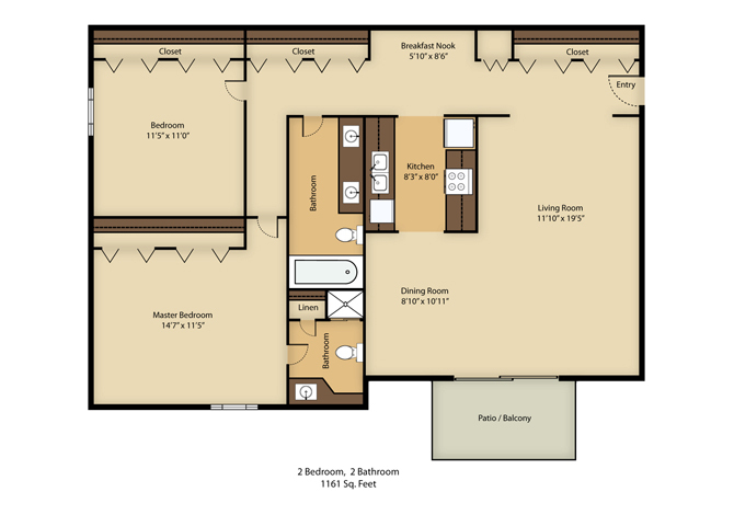 Apartment Model: 2 BedroomFrom $1,6252 Bedroom, 2 Bath, 1161 sq ftAvailable Now![]()