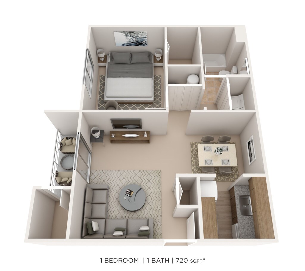 1 Bed, 1 Bath, 720 sq ftAvailable January 2, 2026Model Gallery