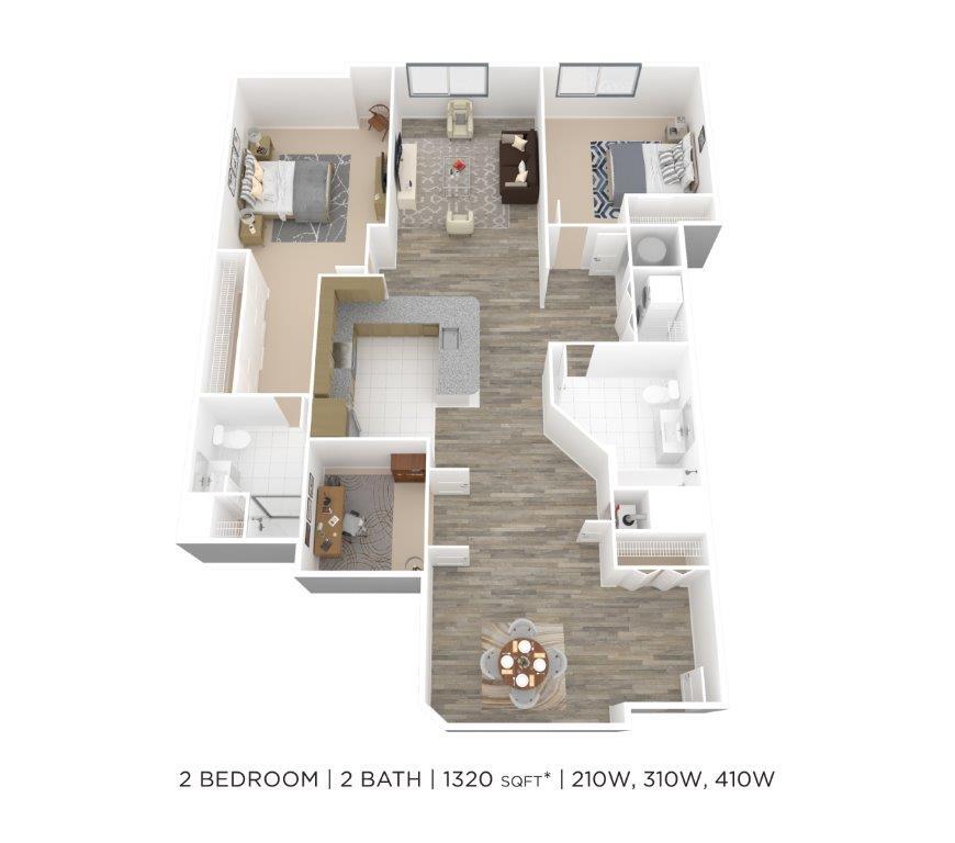 2 Beds, 2 Baths, 1275 sq ftAvailable NowModel Gallery
