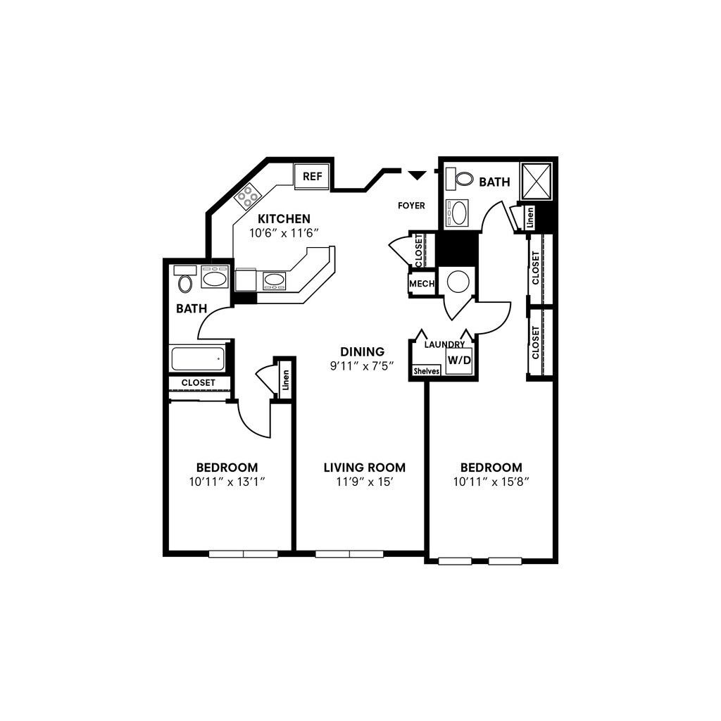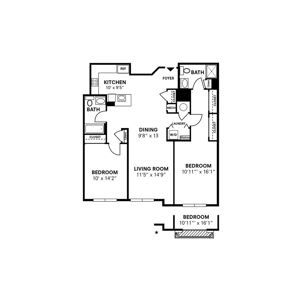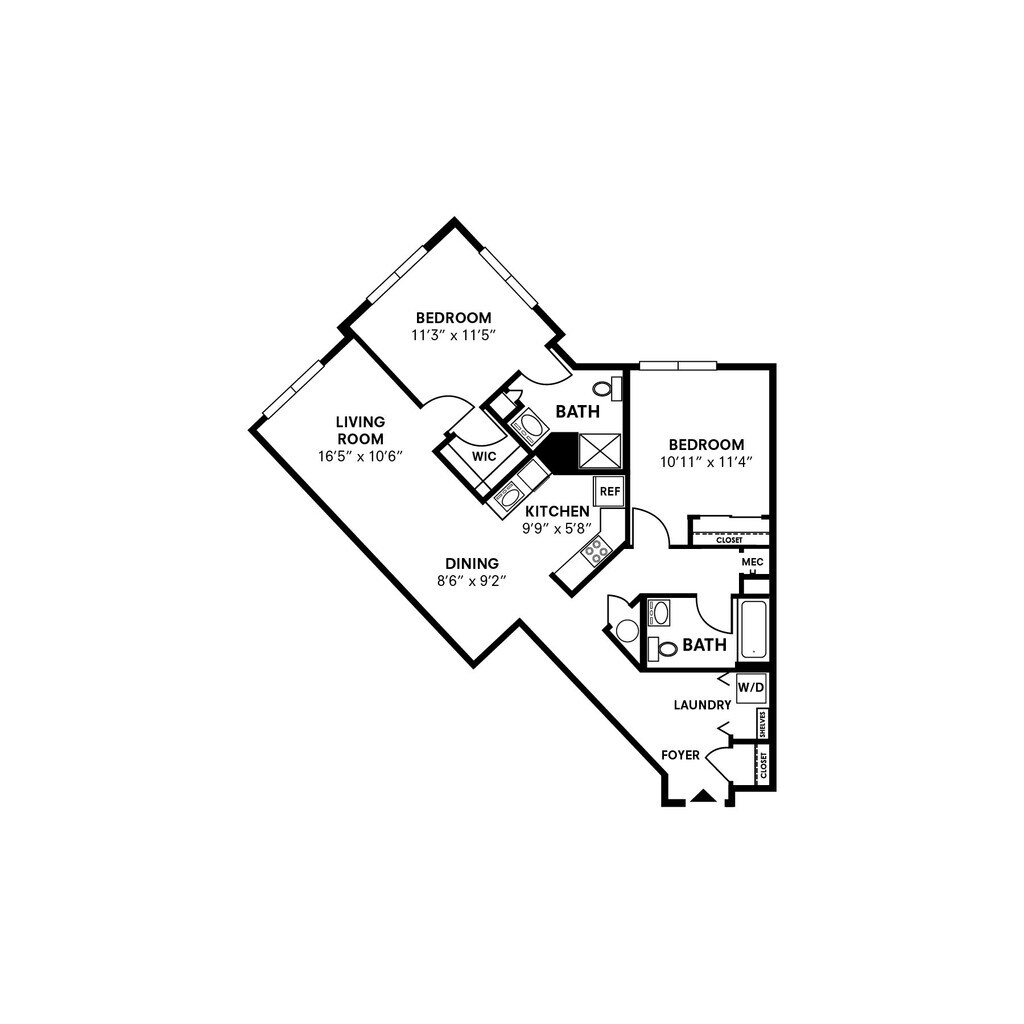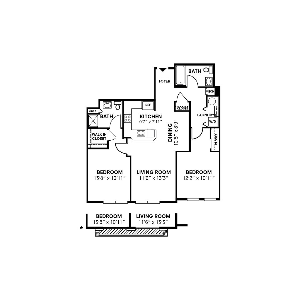 One Bedroom-798 sqft - Floorplan 2 2 Bedrooms