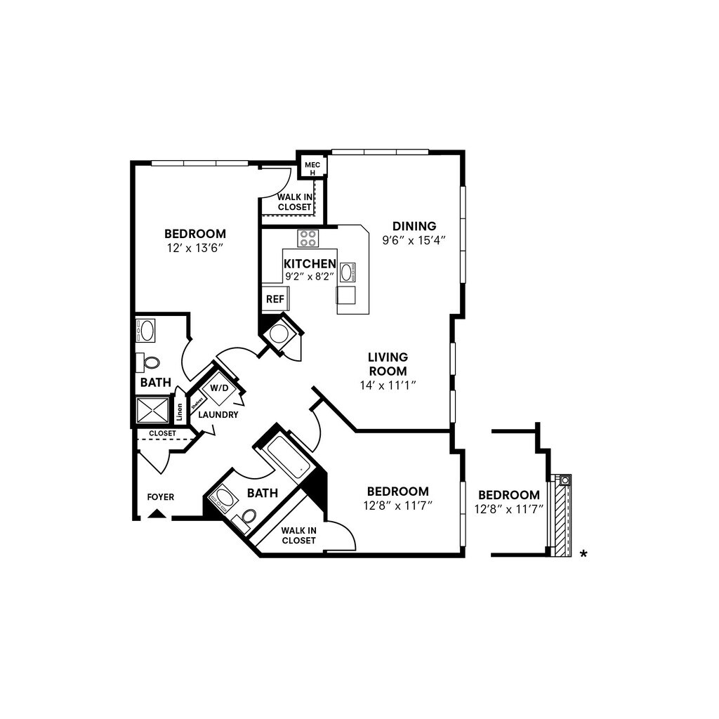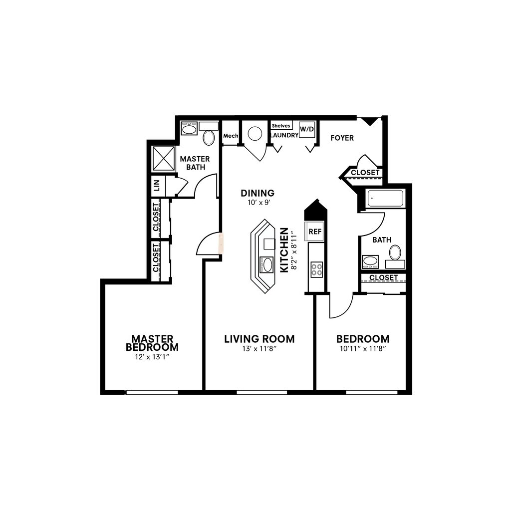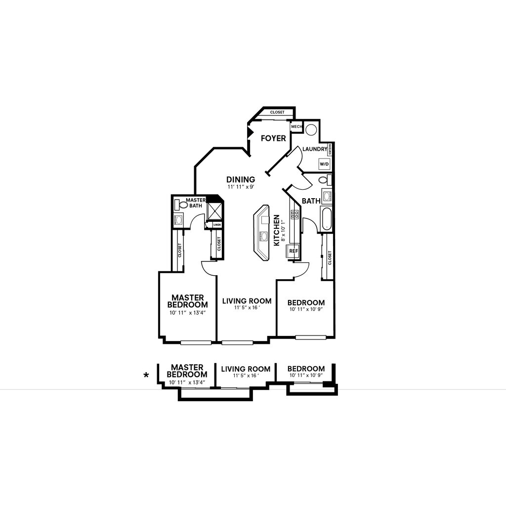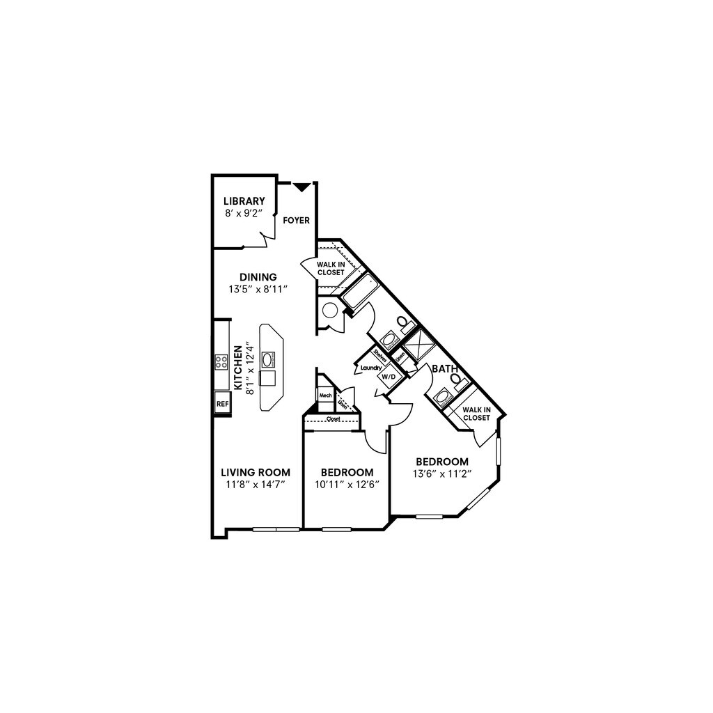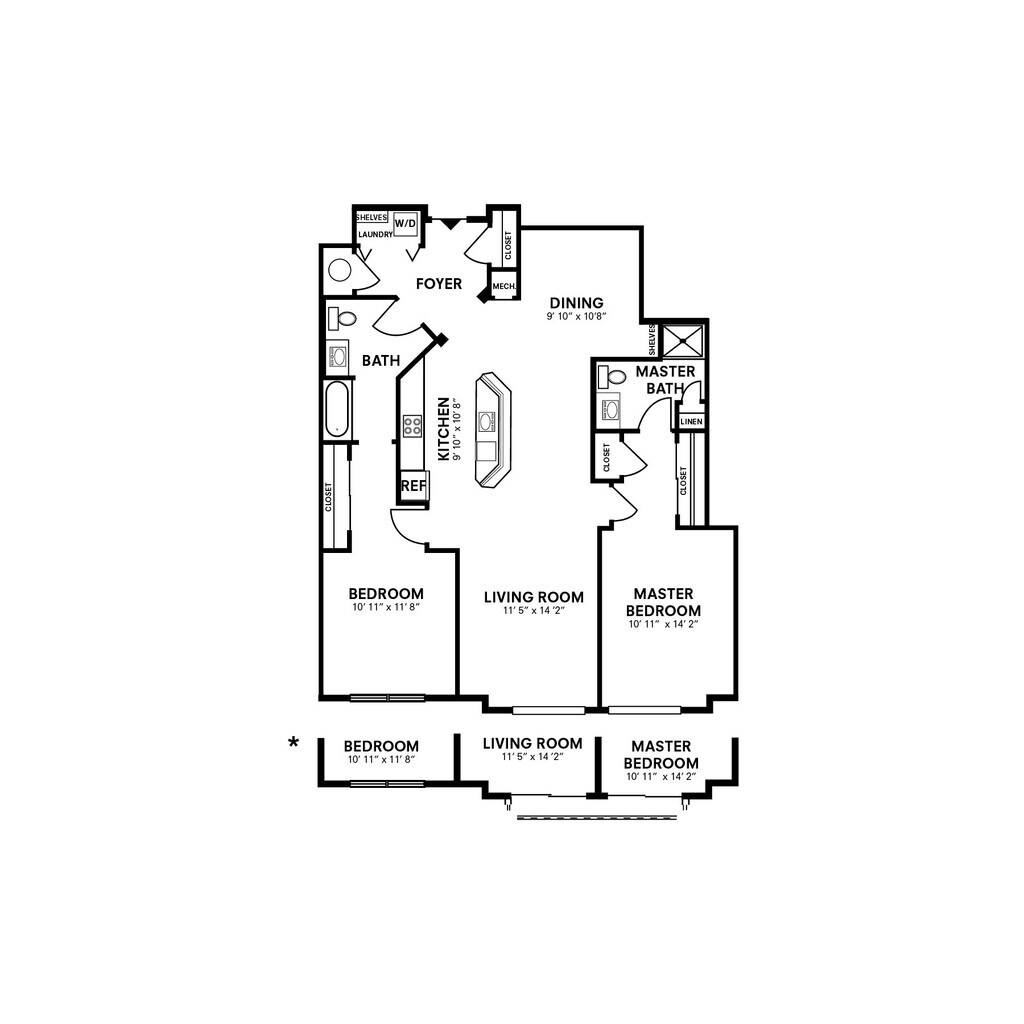 One Bedroom-798 sqft - Floorplan 2 2 Bedrooms