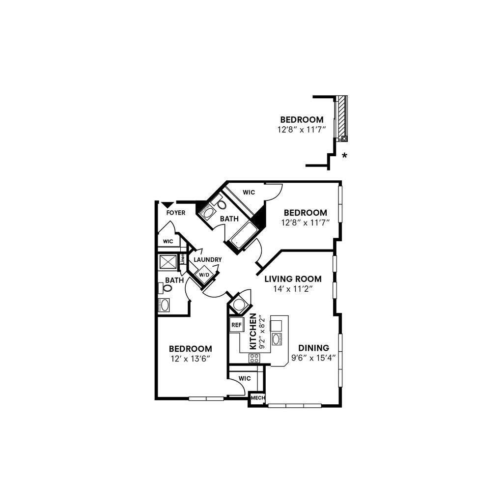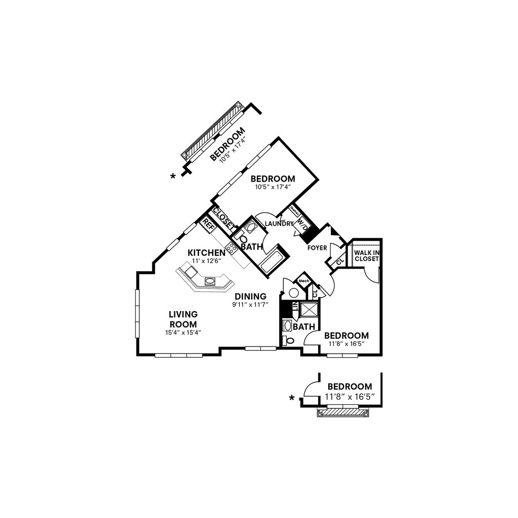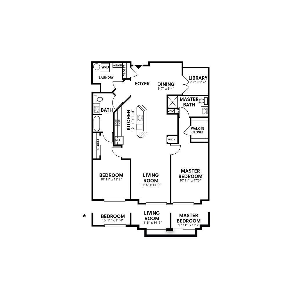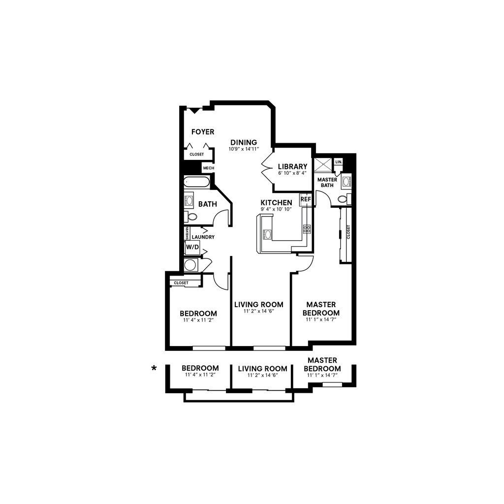 One Bedroom-798 sqft - Floorplan 2 2 Bedrooms