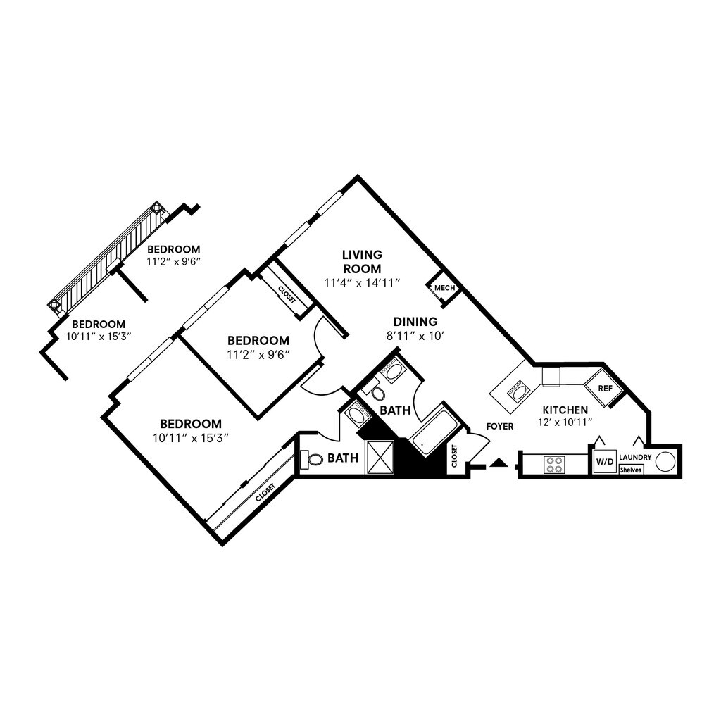 Apartment Model: Two Bedroom 2 Bath- 991 sqftFrom $3,1302 Bedroom, 2 Bath, 991 sq ftAvailable Now![]()