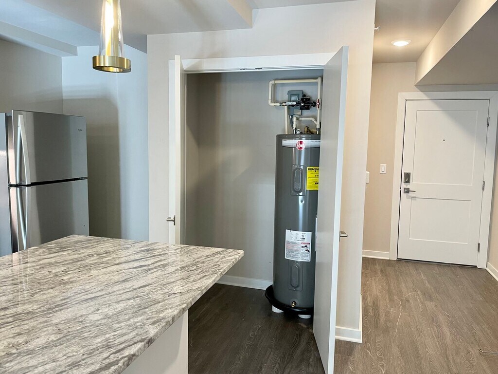 Cream City Lofts is a beautiful historic rehab - the building features soaring ceilings with timber beams and exposed cream city brick walls. The community offers an on-site fitness center, top floor atrium "sun room", and an expansive rooftop deck with 360-views of downtown Milwaukee and Lake Michigan. This 1-bedroom apartment home offers a large main living area with open kitchen and breakfast bar. The entryway into the unit offers a large coat closet and utility room with full-size washer and dryer - plenty of storage space! The bedroom is also oversized with a walk-in closet. This apartment faces south looking toward the Walker's Point neighborhood. It is also located on the 2nd floor of the building - which is home to the 24/7 fitness center, mail and package room, and easily accessible to the parking garage via stairs or elevator.